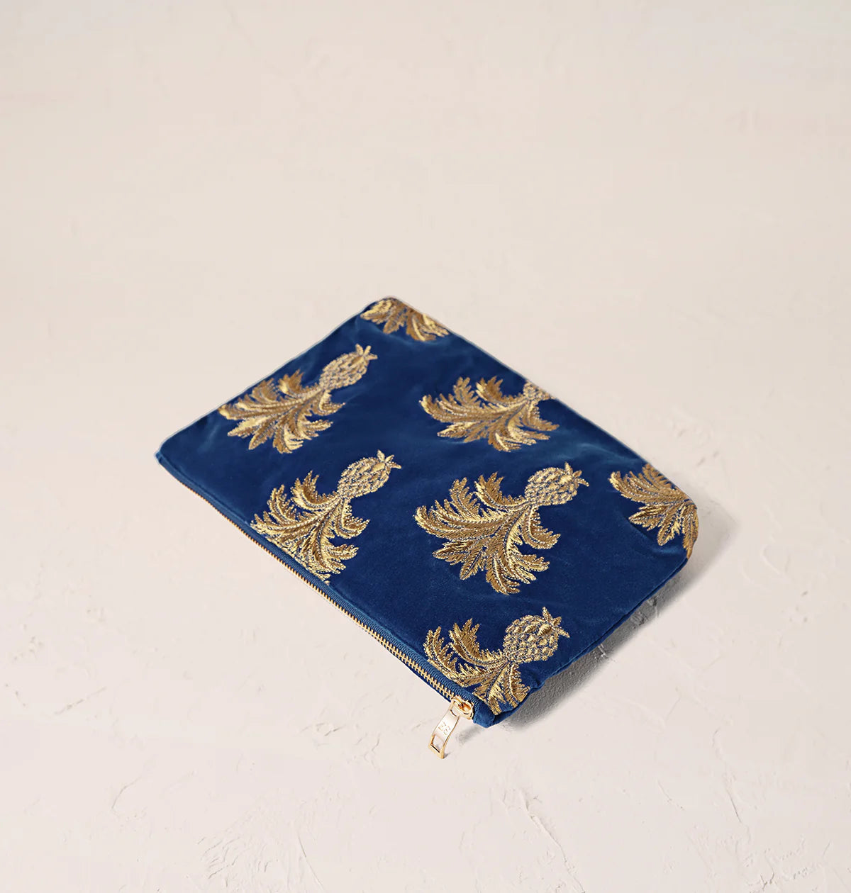 PINEAPPLE EVERYDAY COBALT VELVET POUCH