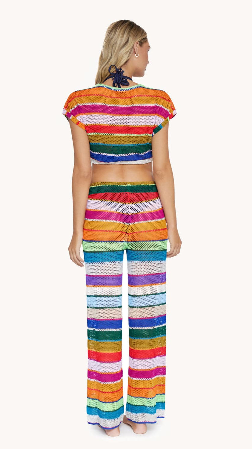 Introducing the PQ Calypso Renee Crop Top, the perfect addition to your summer wardrobe. This multi-colour block crop top features delicate crochet detailing, adding a unique and stylish touch. Wear it on its own with a pair of denim shorts for a casual look, or pair it with the matching Calypso Bree boho pants for a complete and chic ensemble.