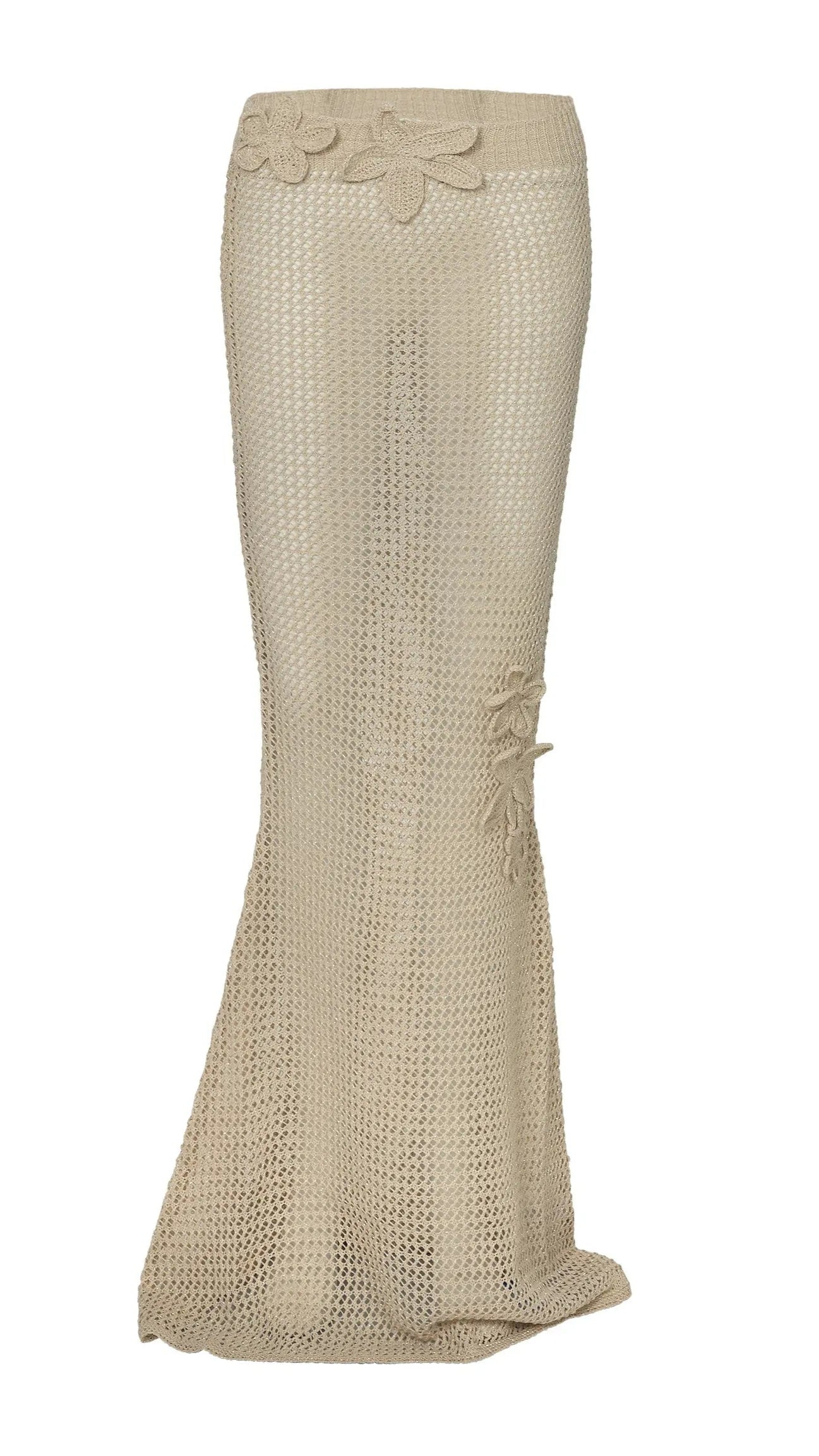 The Maxi Skirt Features A Flattering Tie Detail At The Waist And Delicate Floral Accents, Perfectly Complementing The Set's Airy And Sophisticated Aesthetic..