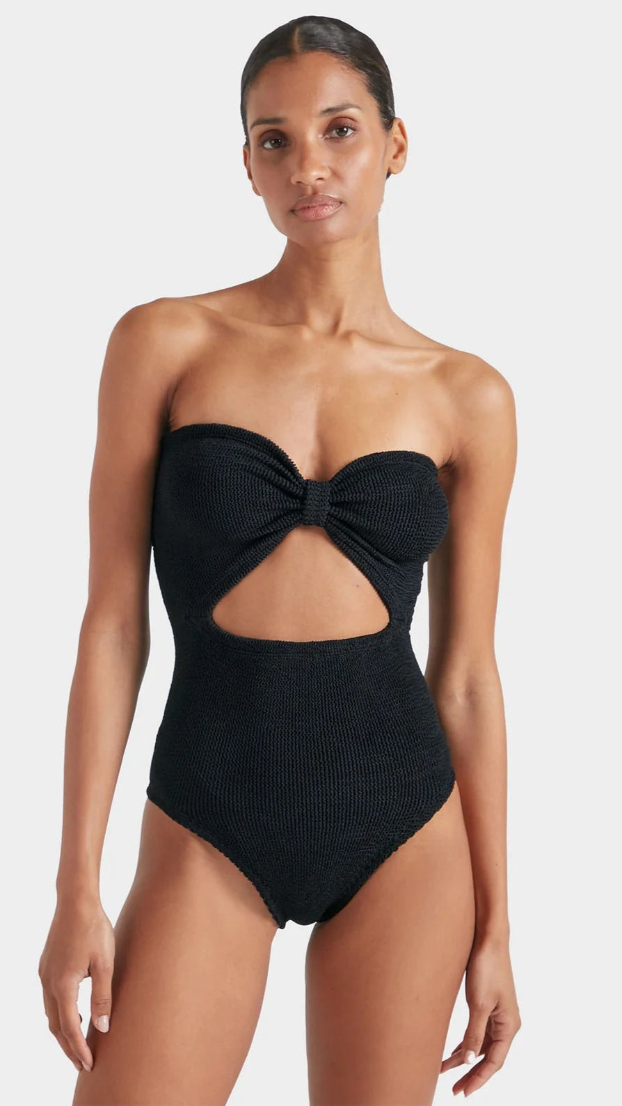 Introducing our Hunza G Alana Black Crinkle Swim, made with high-quality materials and designed for comfort and style. The crinkle texture adds a unique touch to this classic black swimsuit, making it a must-have for any swimwear collection. With its flattering fit and durable construction, you can confidently enjoy your time at the beach or pool. Upgrade your swimwear game.