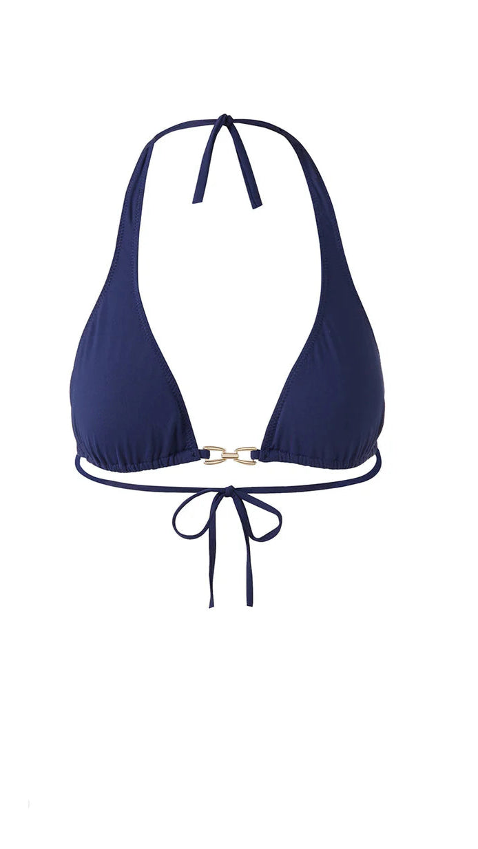 Enhance your beach look with the Melissa Odabash Antibes Navy Bikini Top. Made with high-quality materials, this bikini top offers a comfortable and supportive fit while also providing a stylish and flattering design. The versatile navy colour makes it easy to mix and match with other swimwear pieces. Feel confident and chic in this must-have bikini top. Pair with our Antibes Navy Bikini Top Bottoms.
