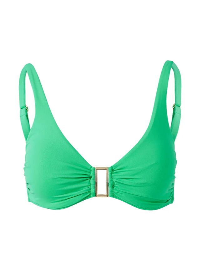 Expertly designed by Melissa Odabash, the Bel Air Green Bikini Top combines style and comfort for the perfect beach look. Made with high-quality materials, this top provides the most flattering fit and long-lasting wear. Elevate your swimwear collection with this must-have piece. complete the look with the Bel Air Bottoms.