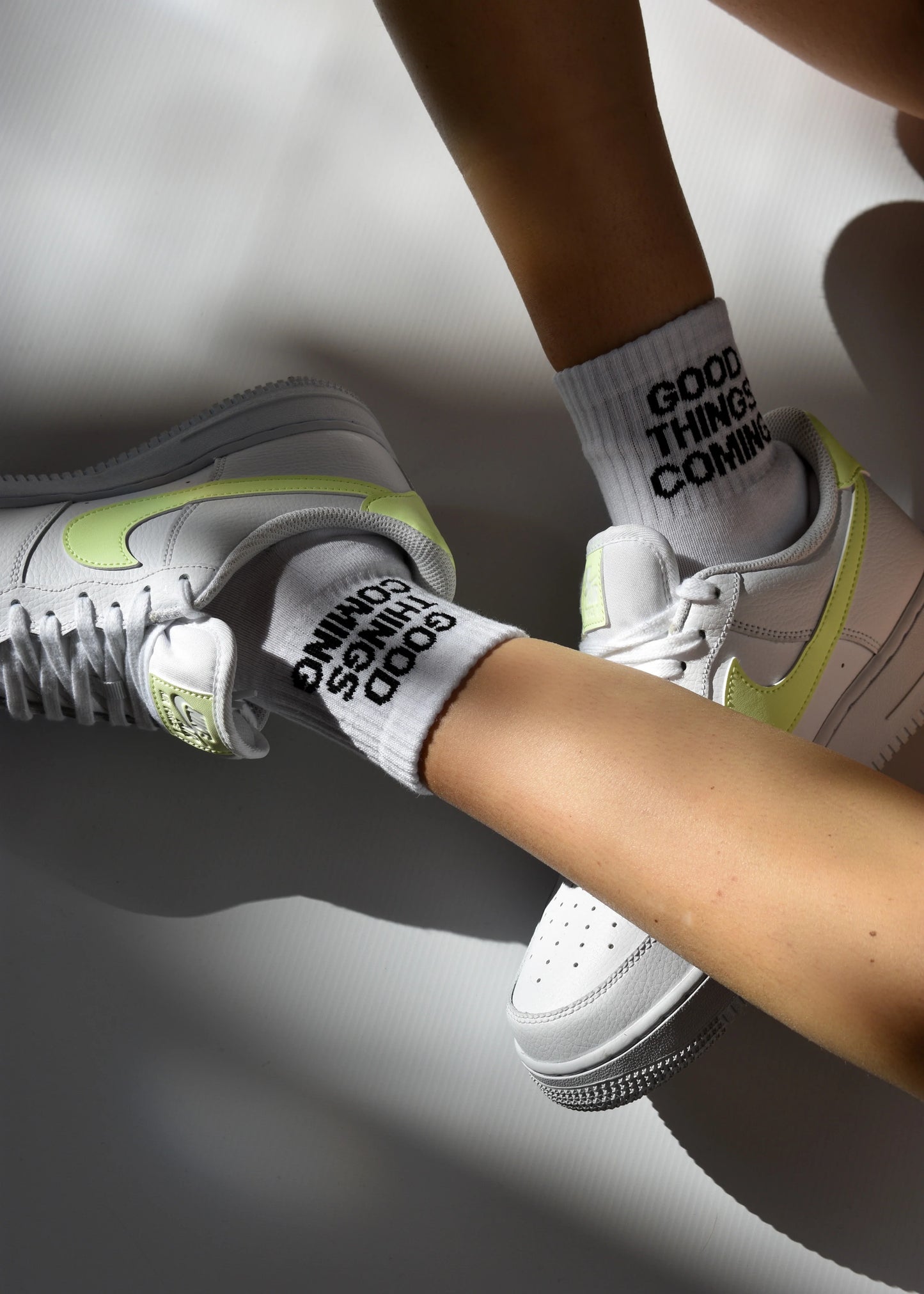 Playful socks from Soxygen with various slogan prints. They are eco-certified yarns with naturally processed and free from any artificial chemicals. Not only does this mean that their socks are kind on your skin but even kinder for our planet.