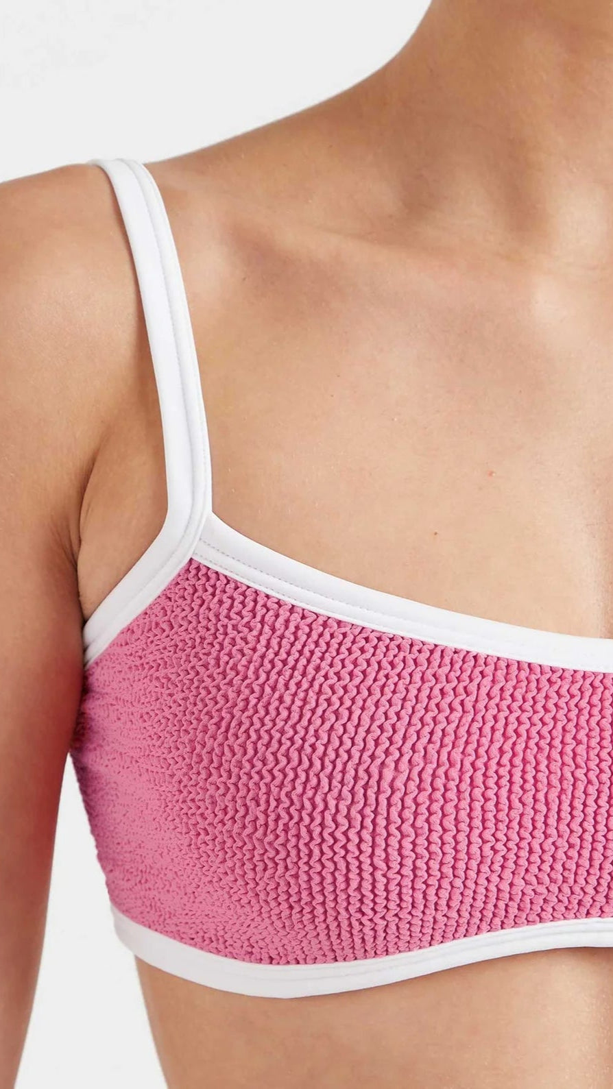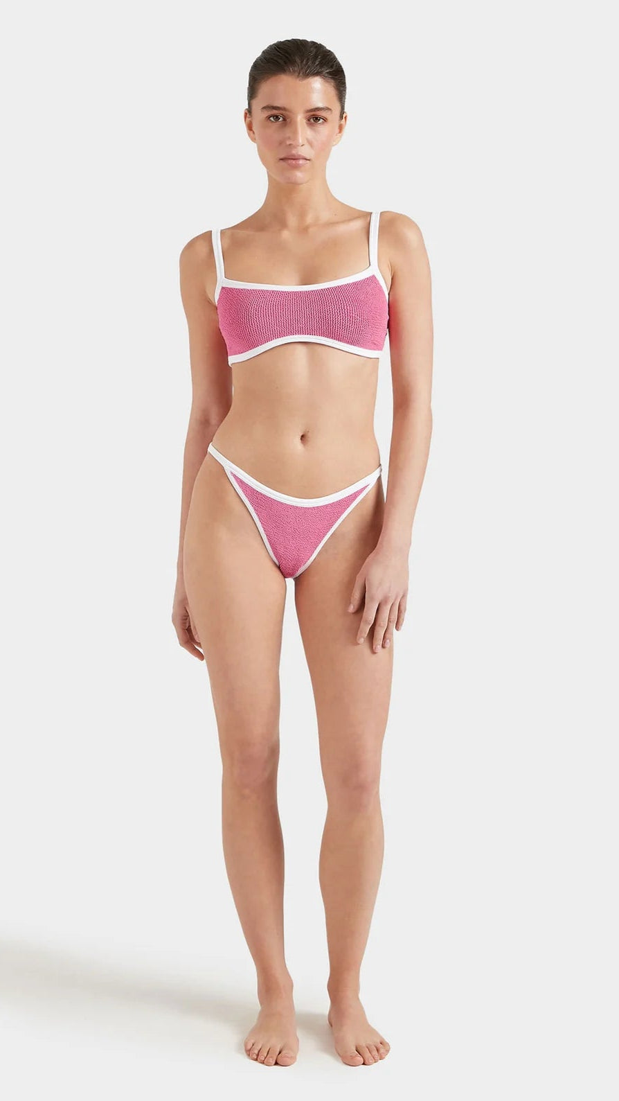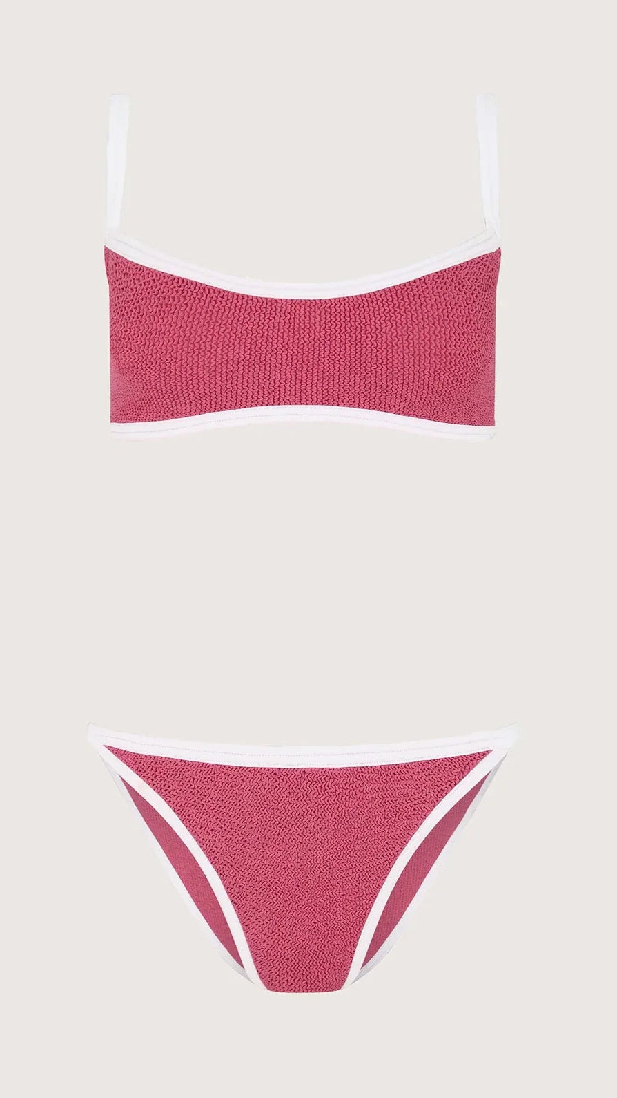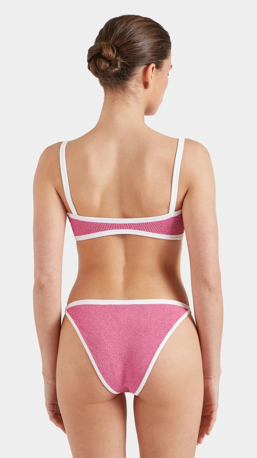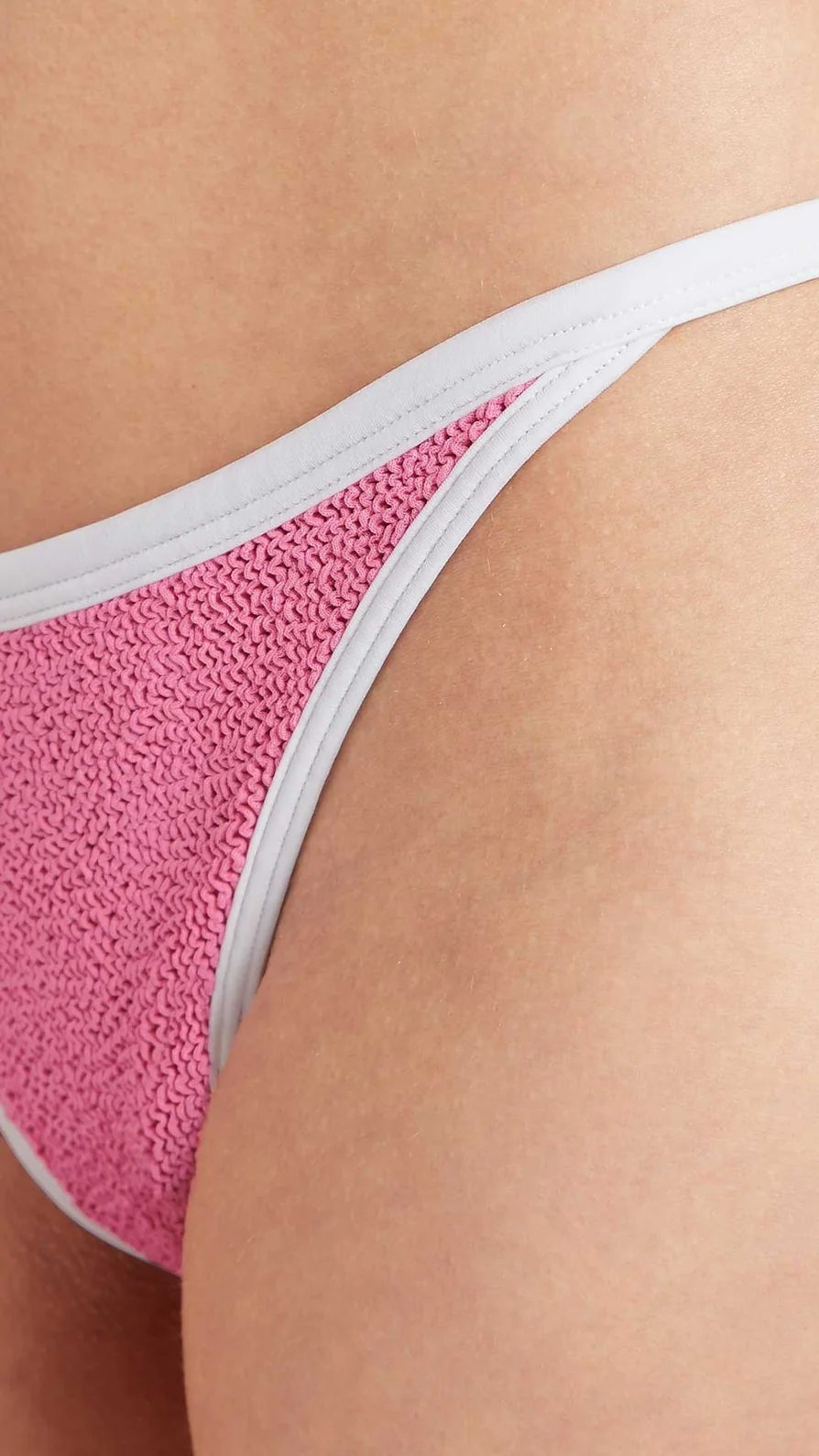 Dare to make a statement with our Hunza G Tyler Candy Pink/White Bikini. This bold and daring piece is perfect for those who love to take risks and stand out. With its vibrant colours and playful design, this bikini will have you feeling confident and ready to embrace any adventure. Don't be afraid to show off your unique style with this must-have swimsuit!