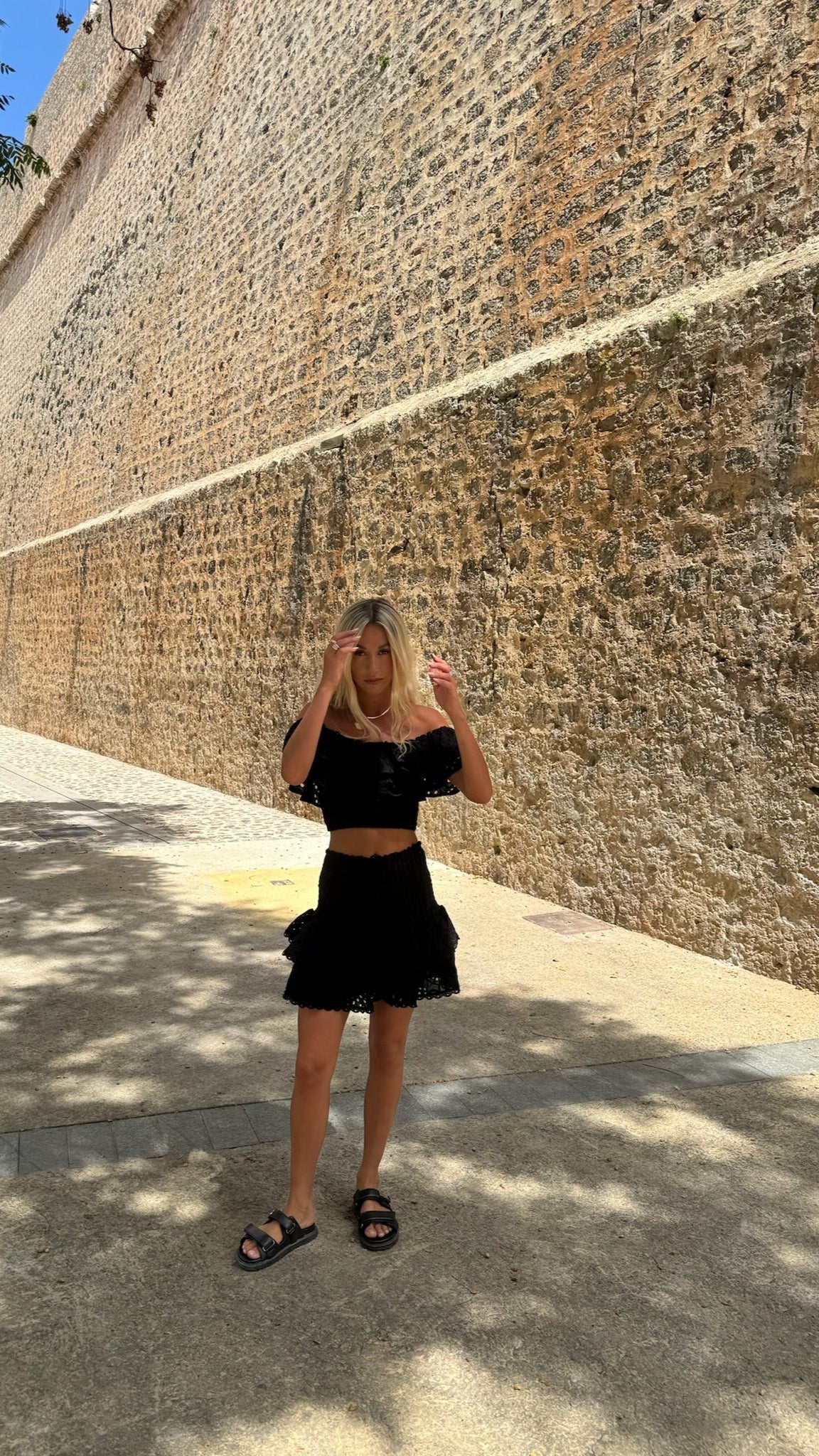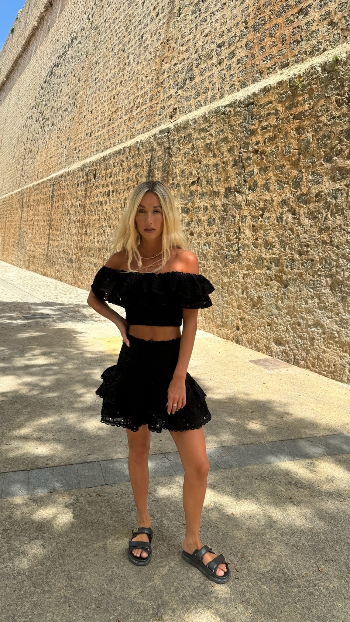 BLACK FRILL & RUFFLE TWO PIECE SET
