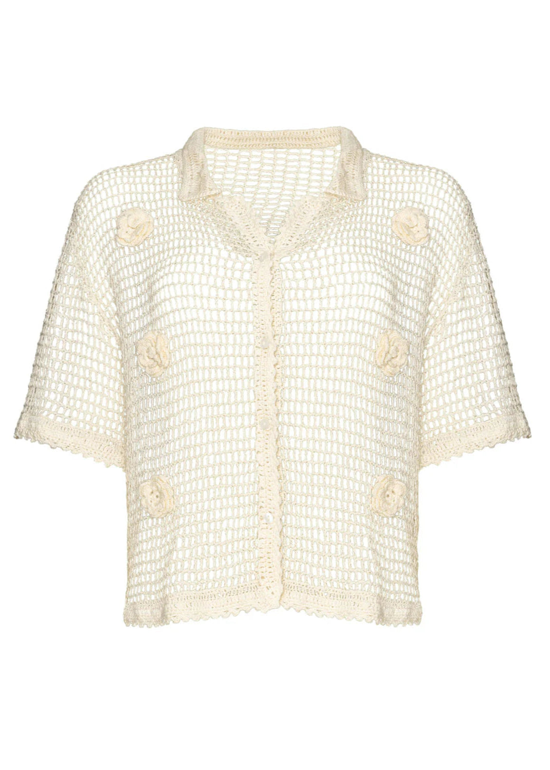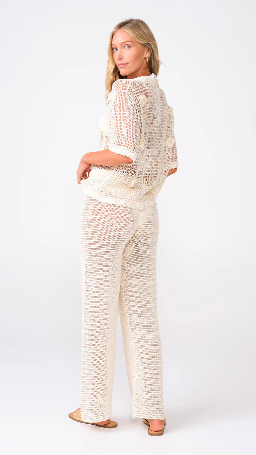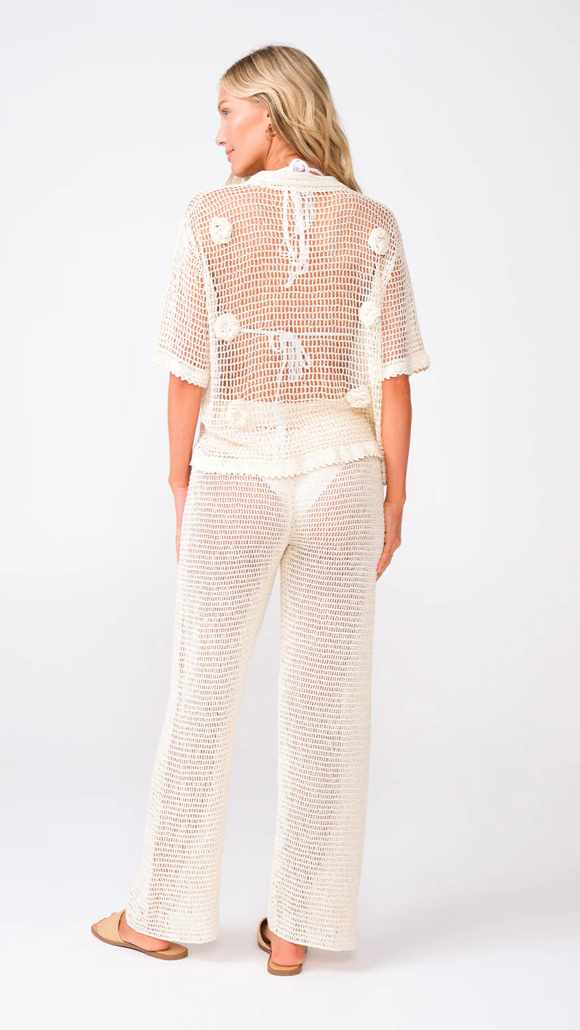 The Flower Top combines boho charm and feminine elegance, featuring a clean button front and delicate flower appliqués. Pair it with matching crochet pants for a comfortable, stylish look perfect for any occasion.